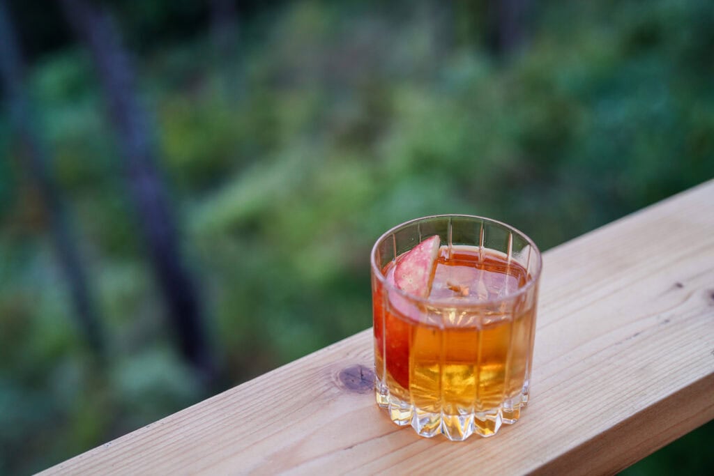 Crisp, refreshing and just sweet enough—this Double Char Bourbon cocktail with apple bitters and soda captures the holidays in a glass.