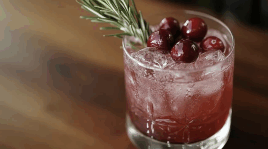 Garnish with seasonal Frozen Cranberries, Dehydrated Orange Wheel, Anise, Cinnamon Stick, Sprig of Juniper, Cloves, Juniper Berries