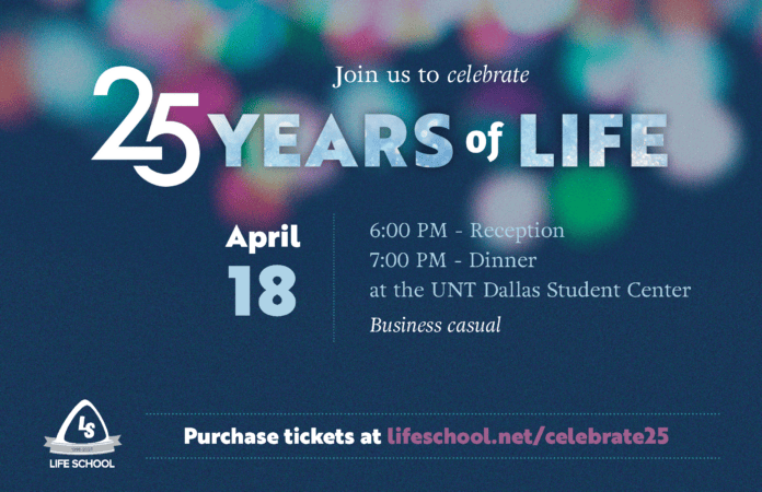 The 25 Years of Life celebration event will be held at the UNT-Dallas Campus on Thursday, April 18th, offering a memorable evening filled with entertainment and artwork by current Life School students. This event will also serve as an opportunity to honor outstanding parents, alumni, and community partners.